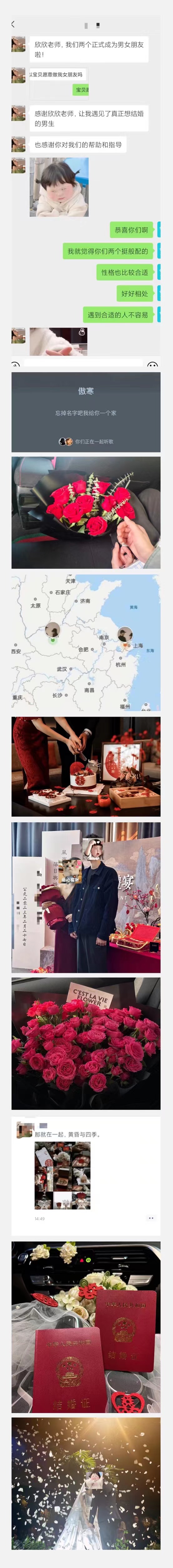 见证了这对会员从开始的见面尴尬局促到恋爱然后异地再到订婚最后到结婚的全部过程,真心的为他们感到开心,期间两个人也经历了很长一段时间的异地恋,好在真心相爱的两个人,修成了正果!祝福他们,最后也希望所有的有缘人能白头偕老,相伴一生!